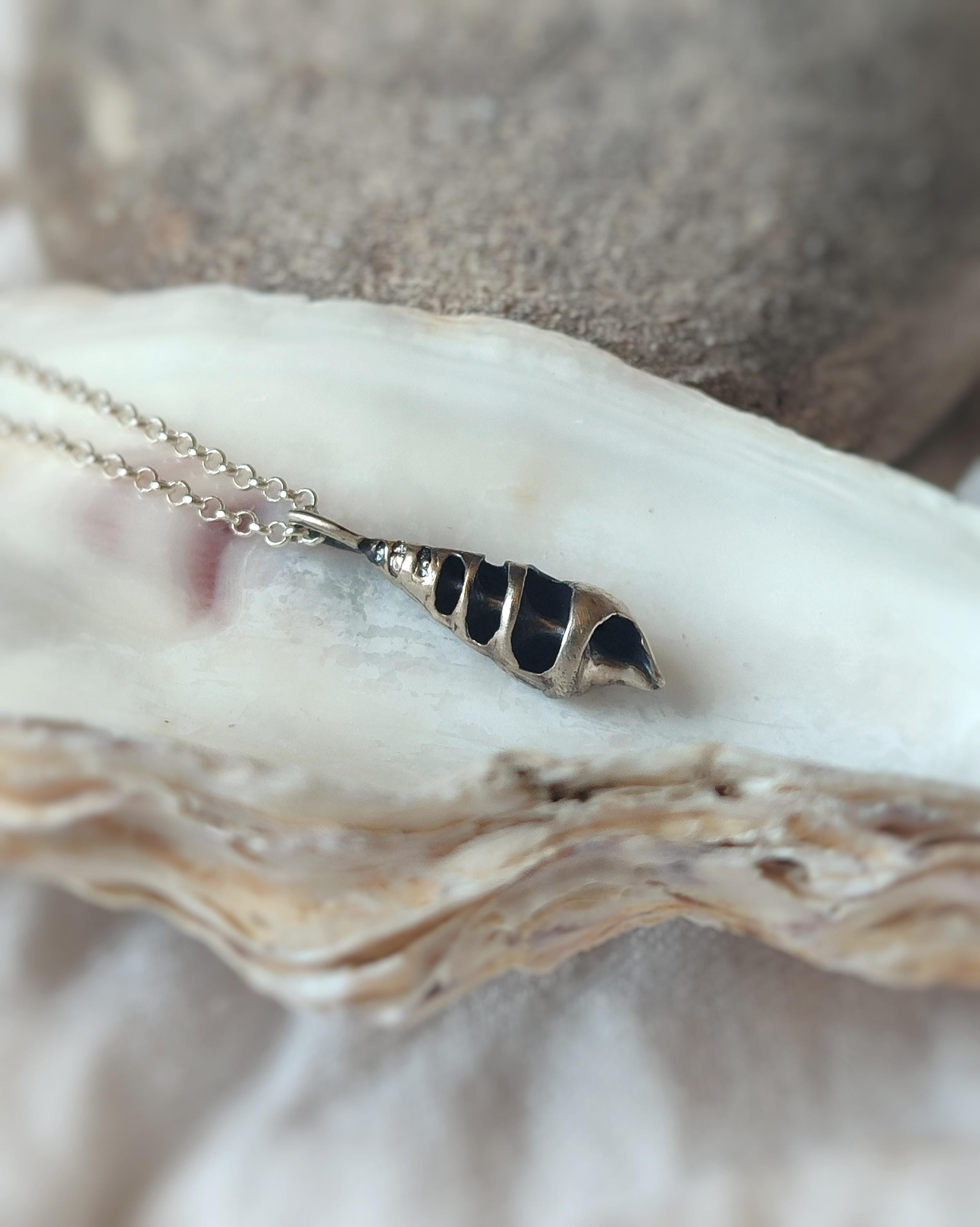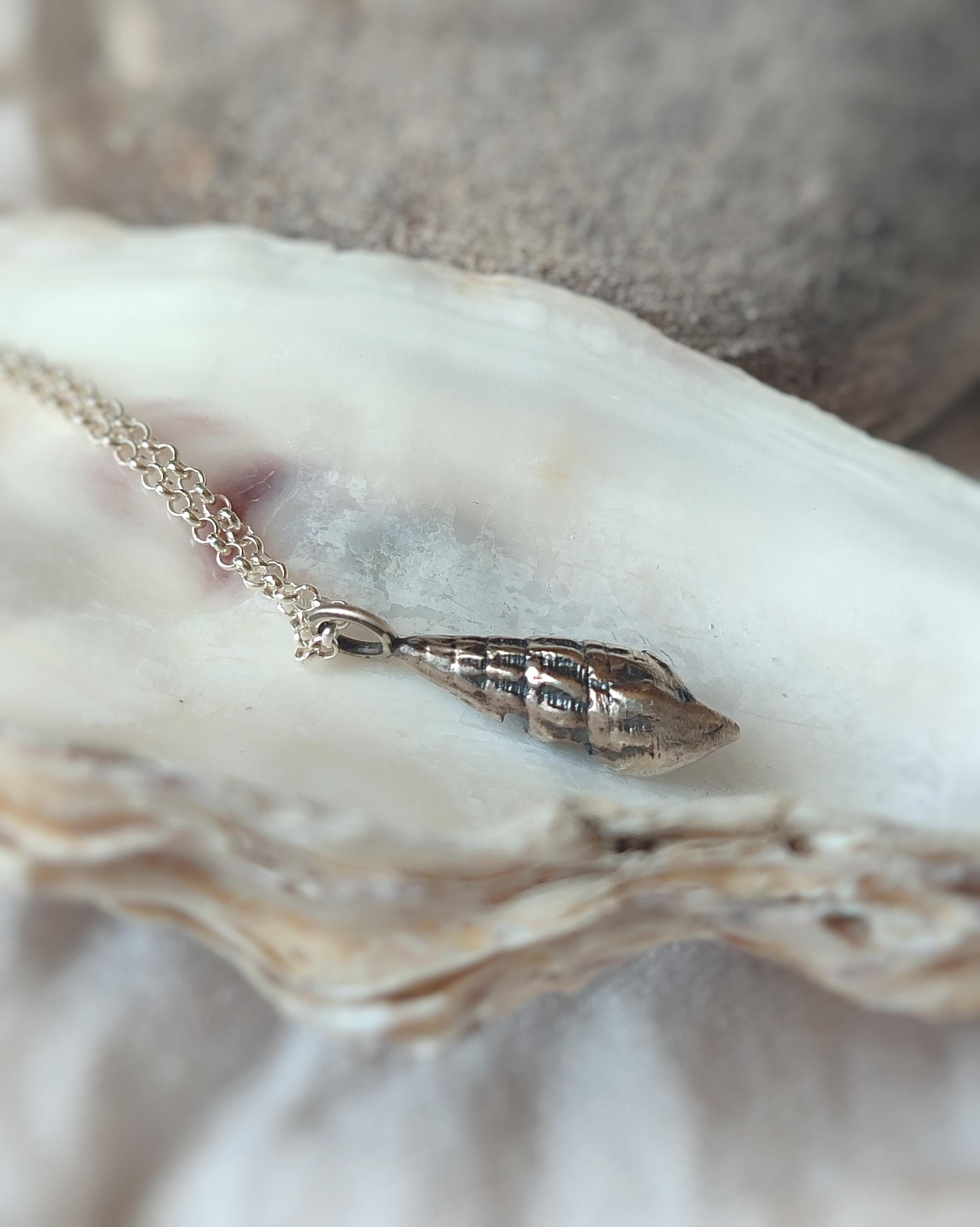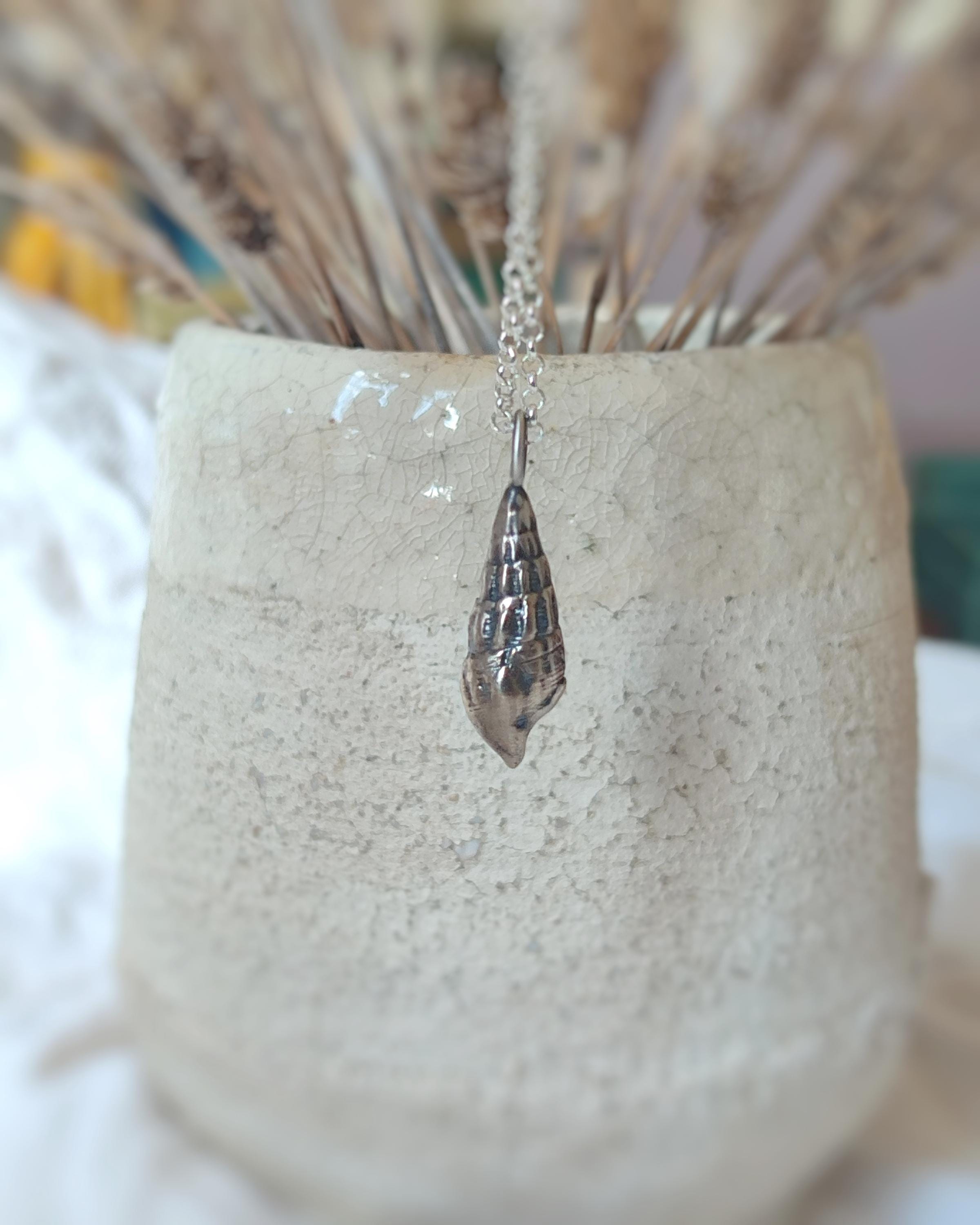 ***Questa collana è stata fatta a mano ed è pensata per le amanti della Natura che non rinunciano però ad avere un look sofisticato. Il ciondolo che raffigura una conchiglia è stato realizzato in argento. La catena è in argento 925.