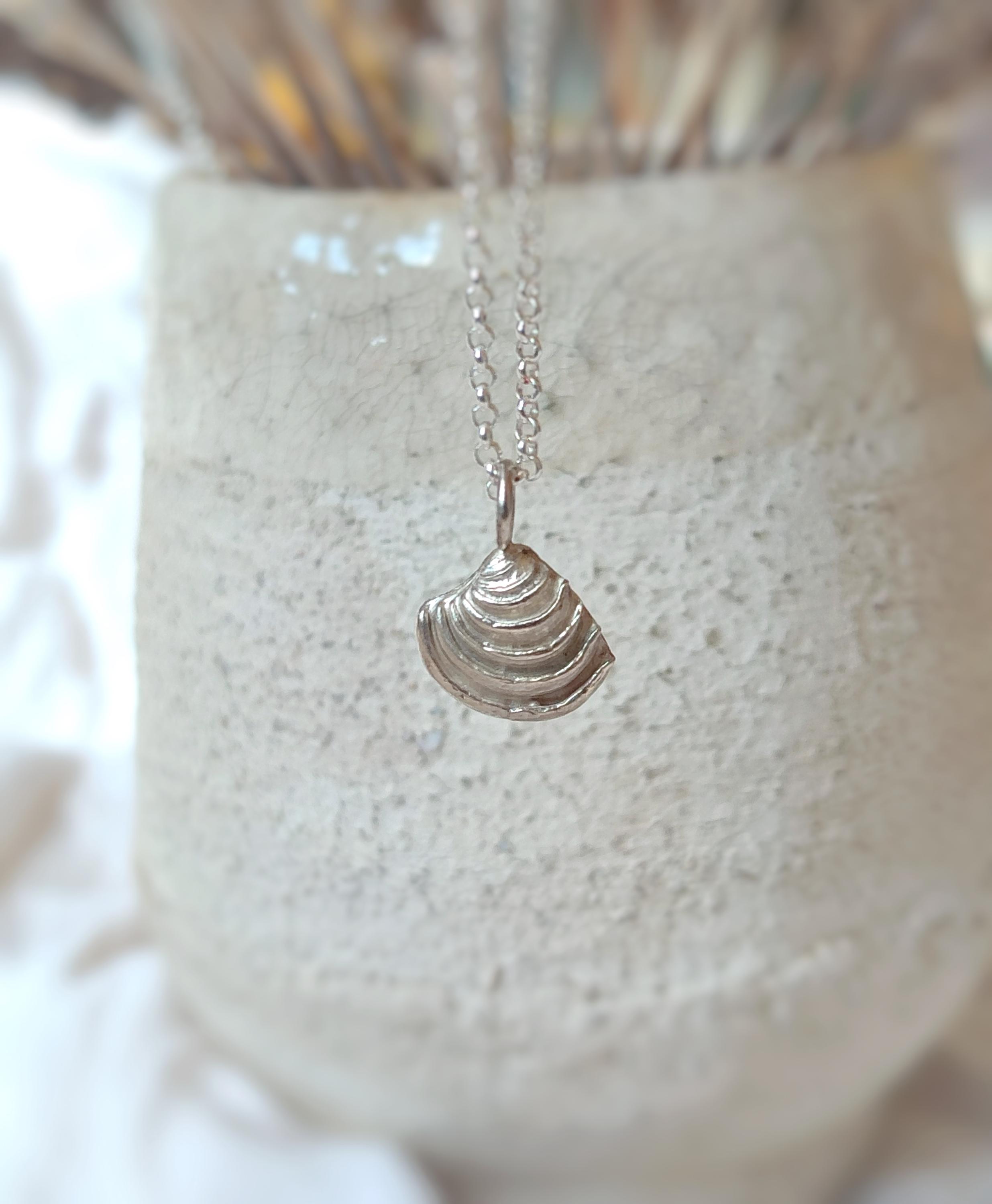 ***Questa collana è stata fatta a mano ed è pensata per le amanti della Natura che non rinunciano però ad avere un look sofisticato. Il ciondolo che raffigura una conchiglia è stato realizzato in argento. La catena è in argento 925.