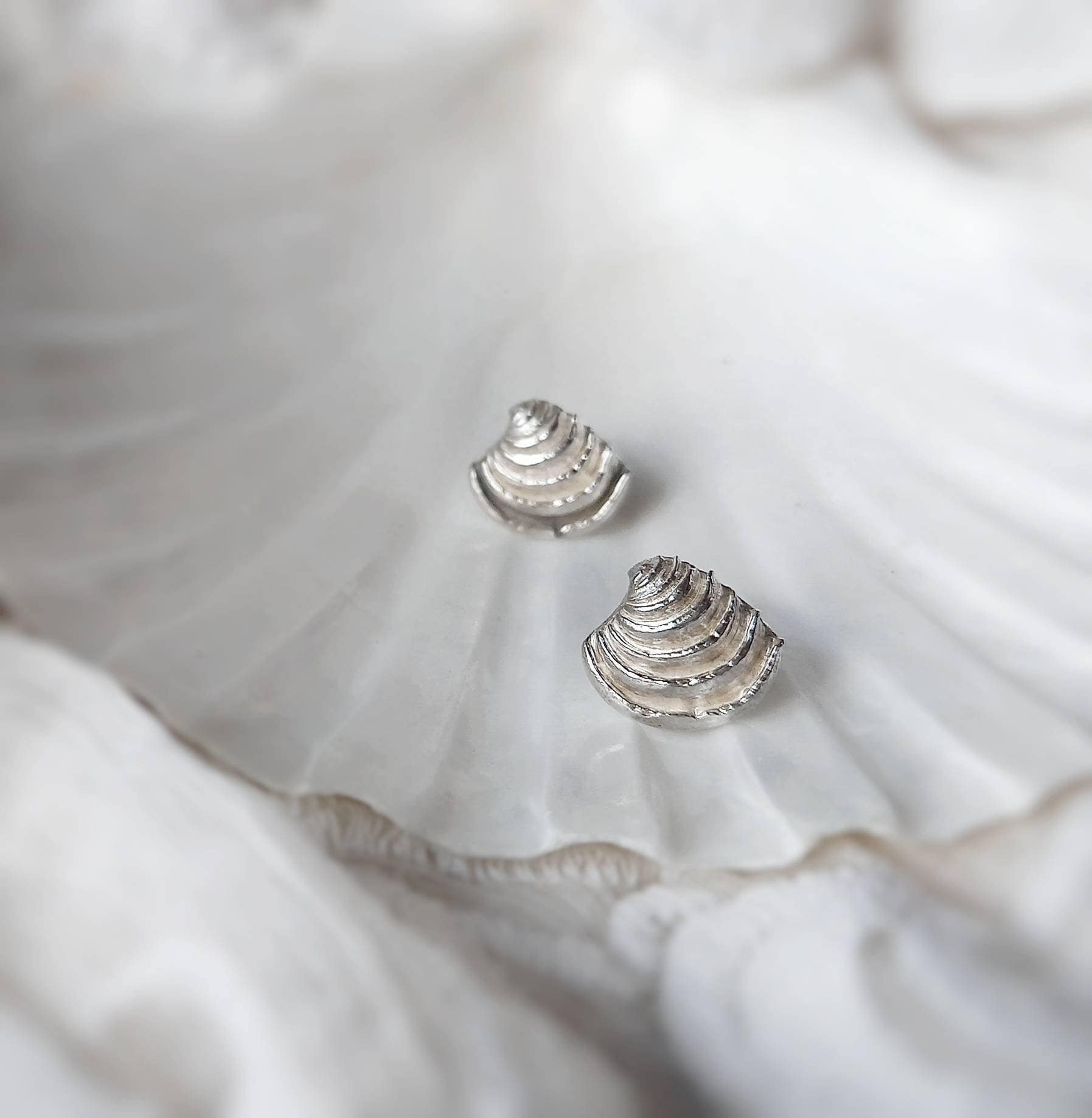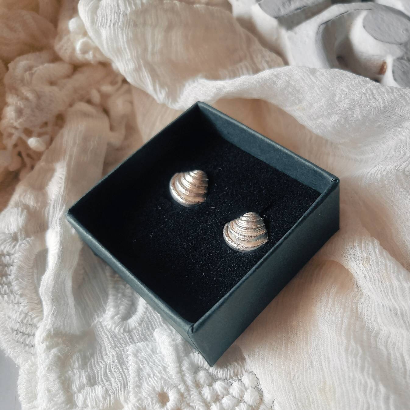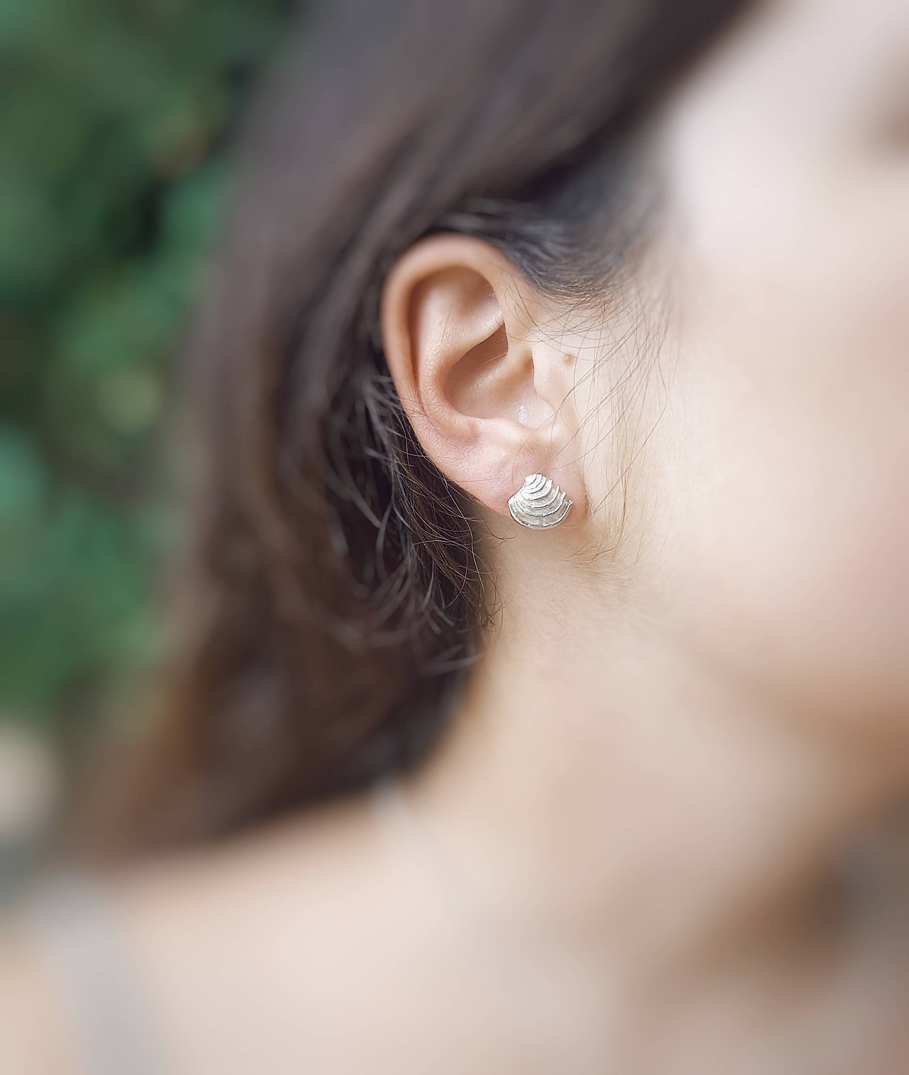 ***Questi orecchini sono stati fatti interamente a mano: La conchiglia è una Clausinella Fasciata, una specie piuttosto rara: dopo aver fatto lo stampo della conchiglia viene fatta una colata in cera e poi viene fuso in argento 925 con l'antica tecnica della fusione a cera persa in un laboratorio fiorentino.Il perno degli orecchini è in Argento 925.