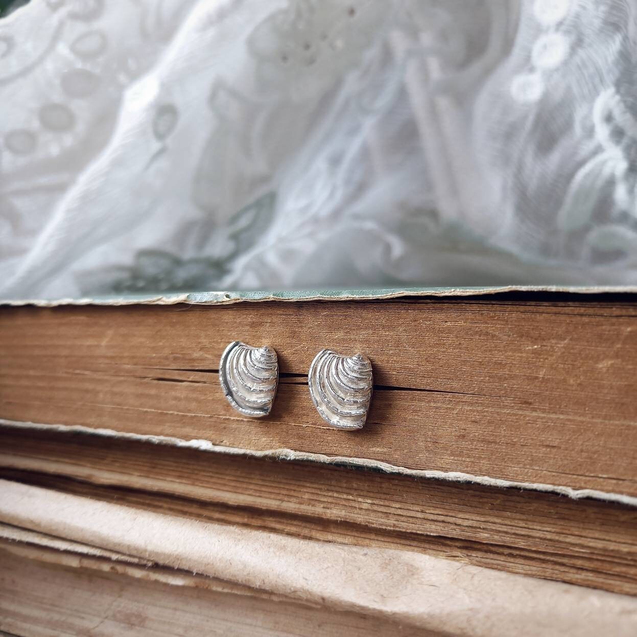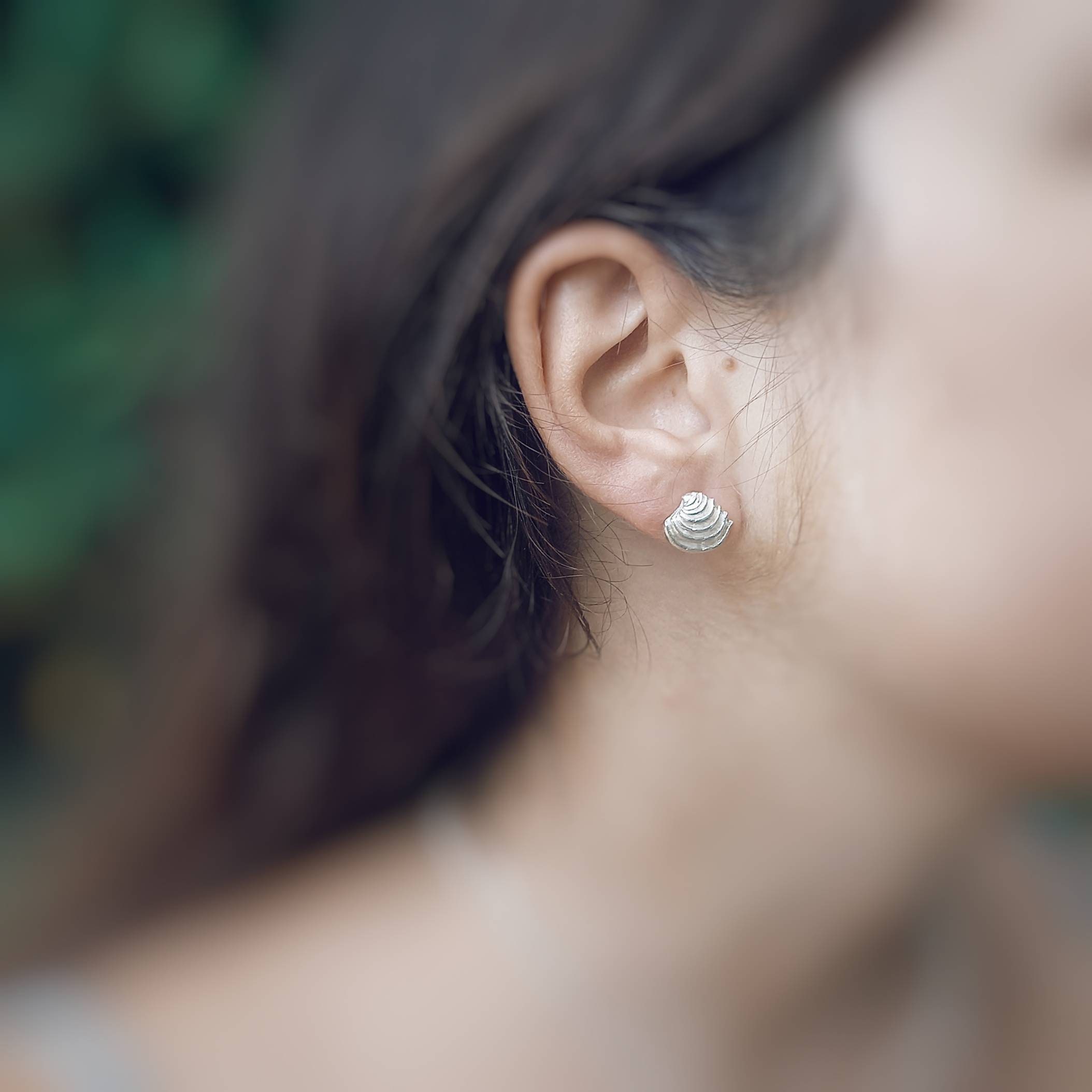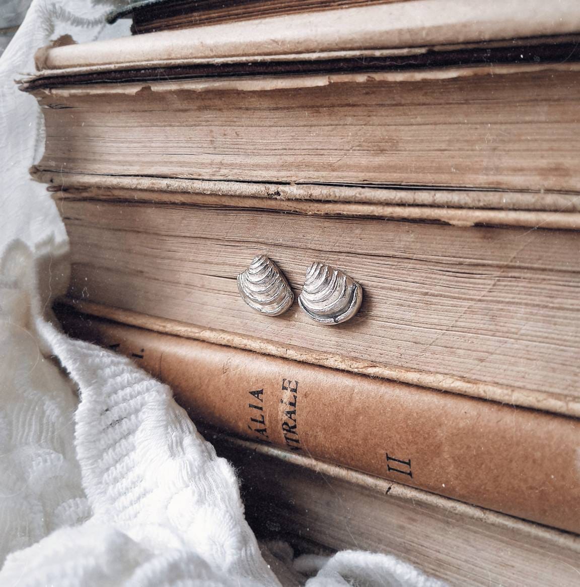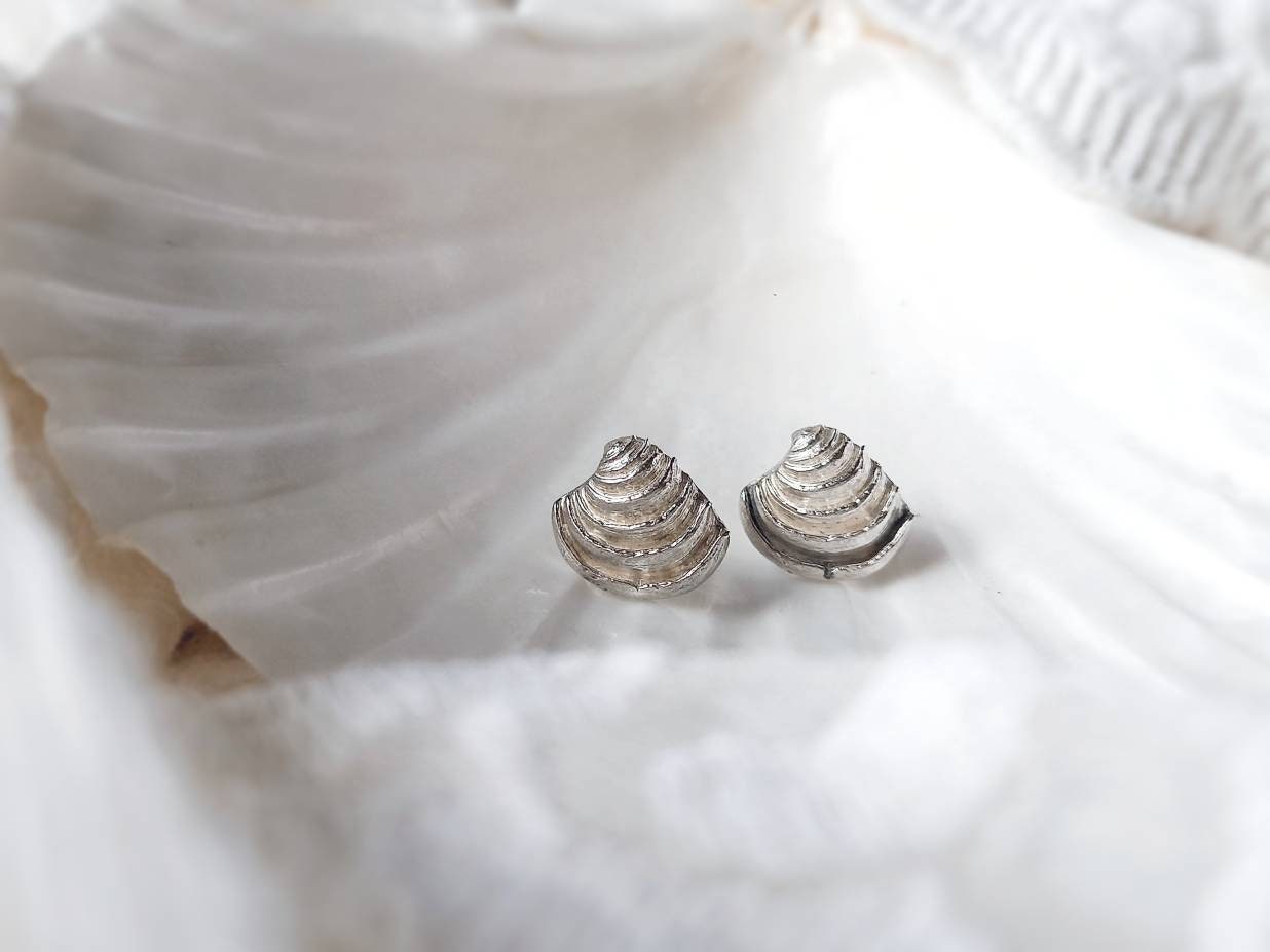 ***Questi orecchini sono stati fatti interamente a mano: La conchiglia è una Clausinella Fasciata, una specie piuttosto rara: dopo aver fatto lo stampo della conchiglia viene fatta una colata in cera e poi viene fuso in argento 925 con l'antica tecnica della fusione a cera persa in un laboratorio fiorentino.Il perno degli orecchini è in Argento 925.