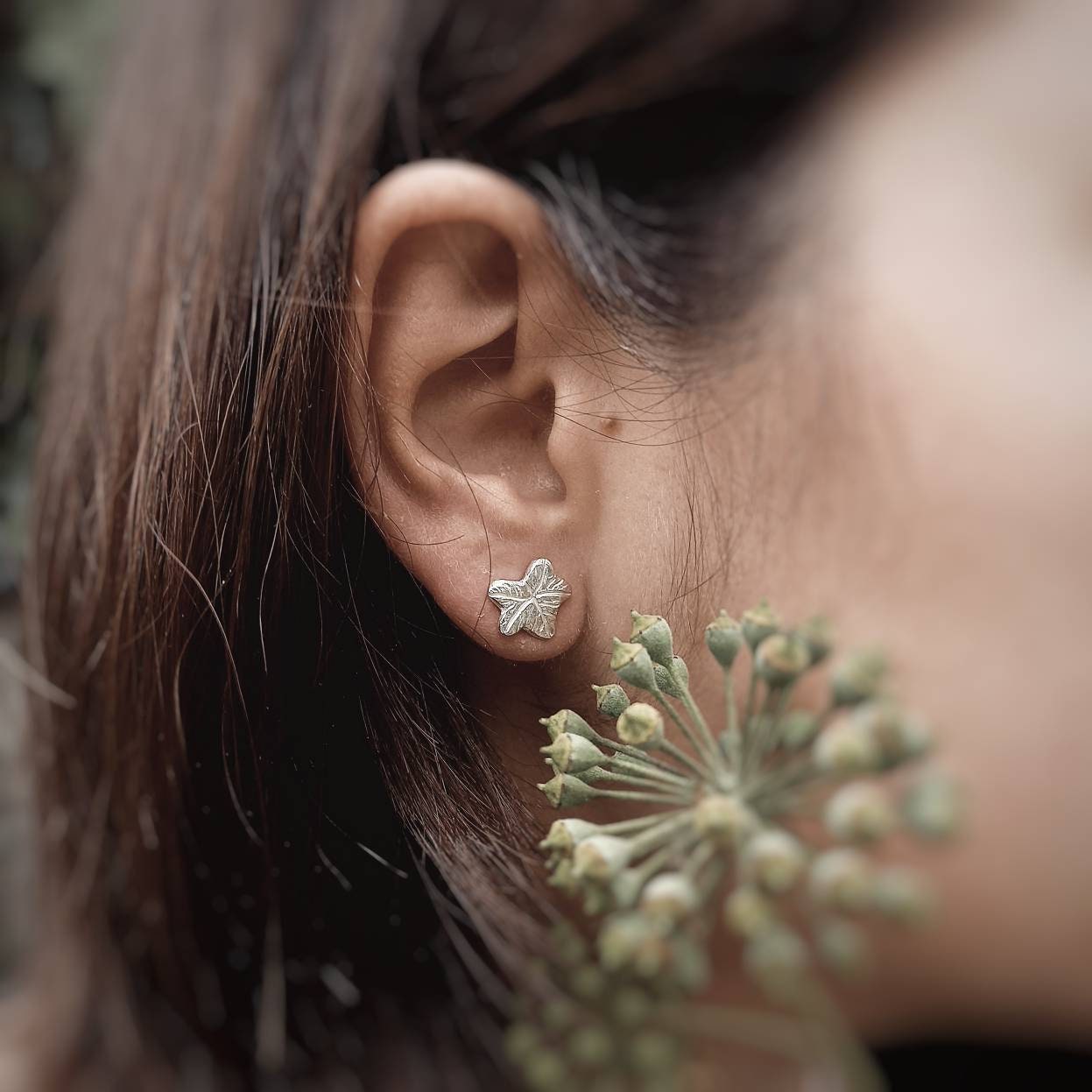 ***Questo paio di orecchini è stato fatto a mano ed è pensato per le amanti della Natura che non rinunciano però ad avere un look sofisticato. Le foglioline di Edera sono state scolpite interamente a mano in cera, poi fuse in argento.