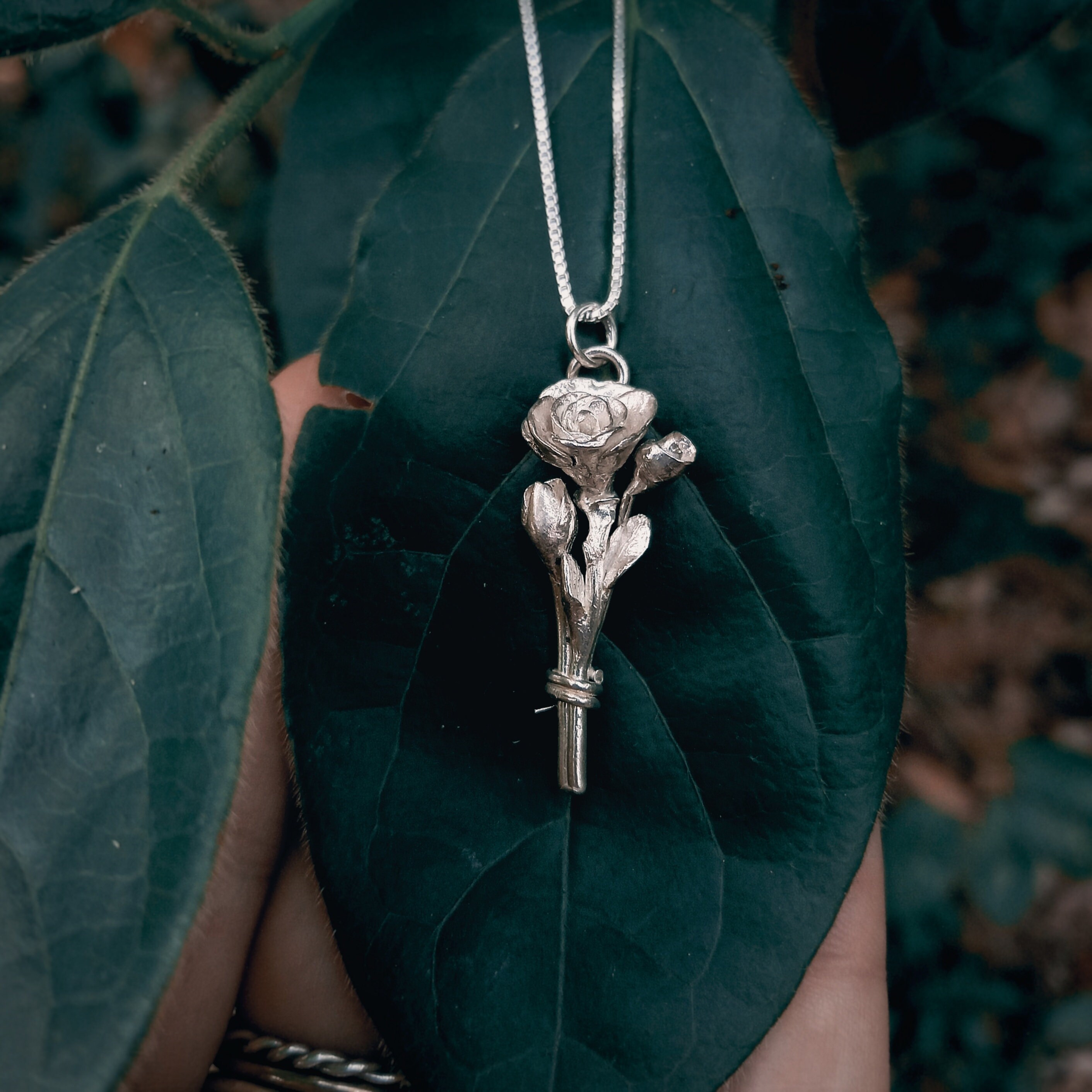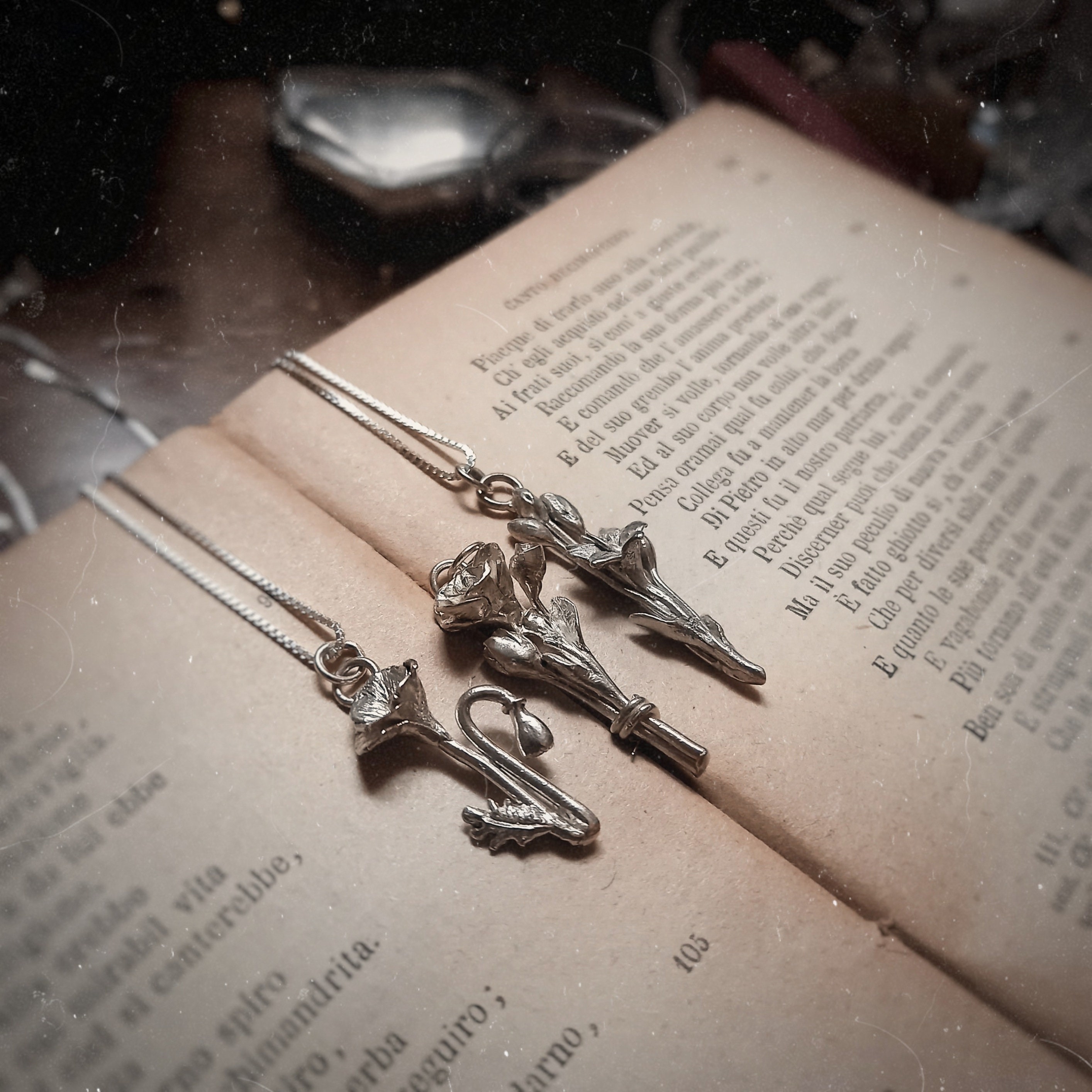 ***Ogni fiore ha qualcosa da raccontare di antico e potente, bisogna saper ascoltare e farci colmare della loro magia. Negli antichi erbari ogni pianta veniva scrupolosamente catalogata e finemente illustrata, erano libri che raccoglievano saperi che mai andrebbero dimenticati, indicazioni farmacologiche, di portamento, di coltivazione e spesso anche di storie legate alla pianta. Dall'amore per la Botanica e per gli antichi Erbari nasce questa collezione, chiamata appunto Herbarium: sono pezzi unici creati lentamente scolpendo la cera minuziosamente, fusi in argento 925 con la tecnica della cera persa in un laboratorio fiorentino.