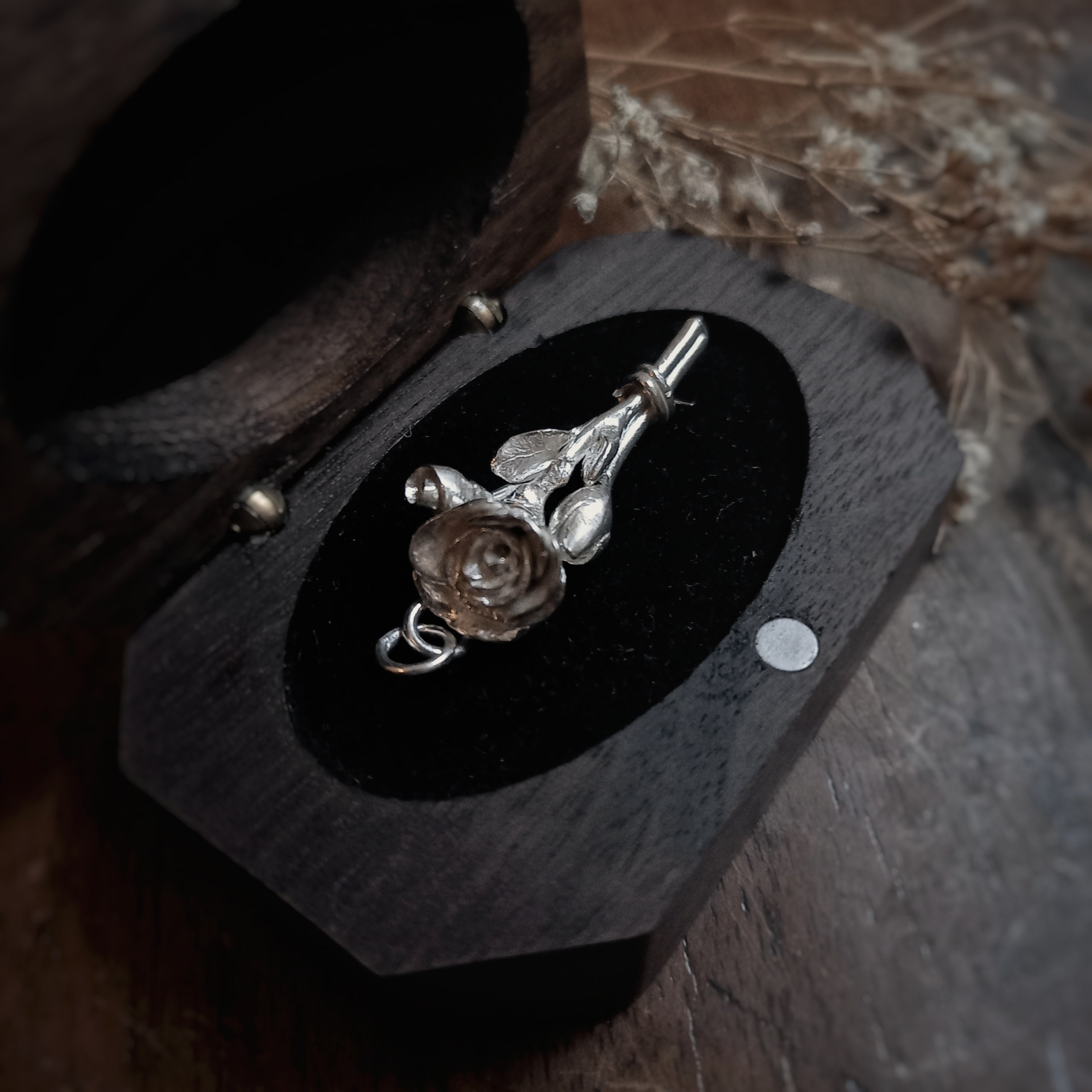 Ogni fiore viene custodito in una preziosa scatola di legno con interni in velluto nero e accompagnato da un biglietto dove vengono raccontate alcune curiosità ad esso legato.