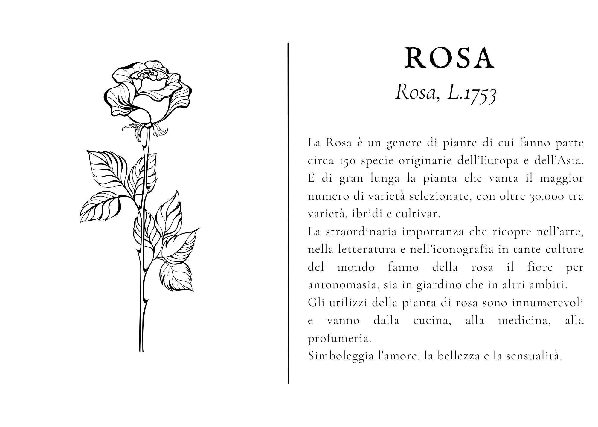 La Rosa è un genere di piante di cui fanno parte circa 150 specie originarie dell’Europa e dell’Asia. È di gran lunga la pianta che vanta il maggior numero di varietà selezionate, con oltre 30.000 tra varietà, ibridi e cultivar.