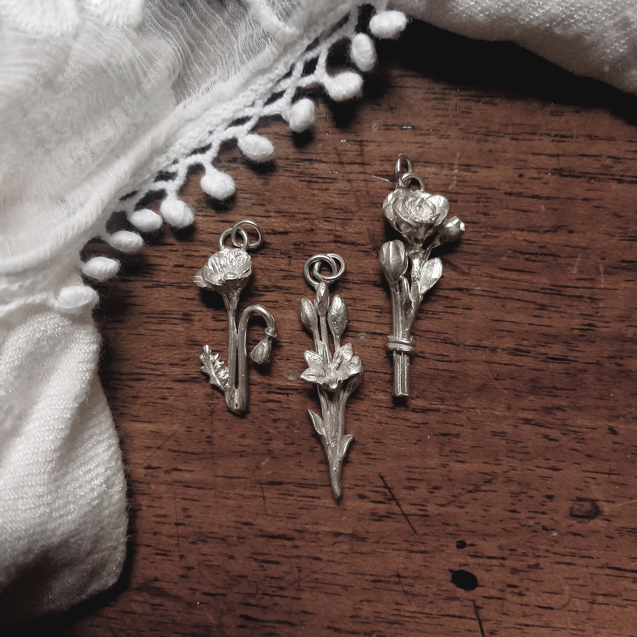 ***Ogni fiore ha qualcosa da raccontare di antico e potente, bisogna saper ascoltare e farci colmare della loro magia. Negli antichi erbari ogni pianta veniva scrupolosamente catalogata e finemente illustrata, erano libri che raccoglievano saperi che mai andrebbero dimenticati, indicazioni farmacologiche, di portamento, di coltivazione e spesso anche di storie legate alla pianta. Dall'amore per la Botanica e per gli antichi Erbari nasce questa collezione, chiamata appunto Herbarium: sono pezzi unici creati lentamente scolpendo la cera minuziosamente, fusi in argento 925 con la tecnica della cera persa in un laboratorio fiorentino.