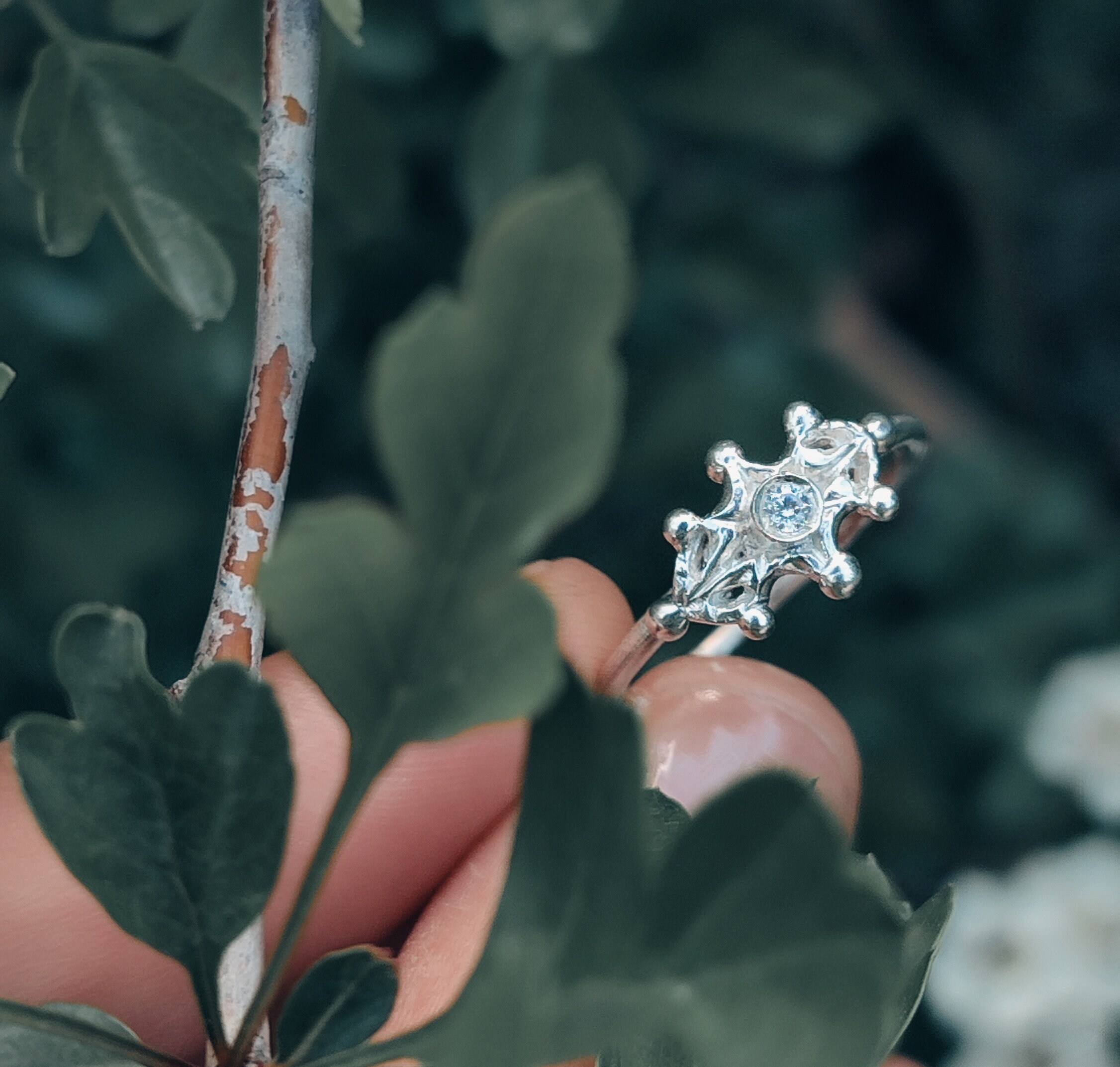 ***Questa collezione celebra la memoria e l'antica arte dei Merletti, sapientemente realizzati a mano dalle nostre nonne, una tradizione che non si dovrebbe perdere perchè parte integrante della nostra cultura e custode di una sapere manuale antico. Ho voluto ricordarla così, scolpendo a mano la cera per realizzare un anello impreziosito da un brillante zircone. L'anello è stato poi fuso con l'antica tecnica della cera persa in un laboratorio fiorentino.