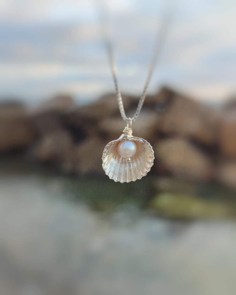 ***Questa collana è stata fatta a mano ed è pensata per le amanti della Natura che non rinunciano però ad avere un look sofisticato. Il ciondolo che raffigura una conchiglia è stato realizzato in argento. La catena è in argento 925.