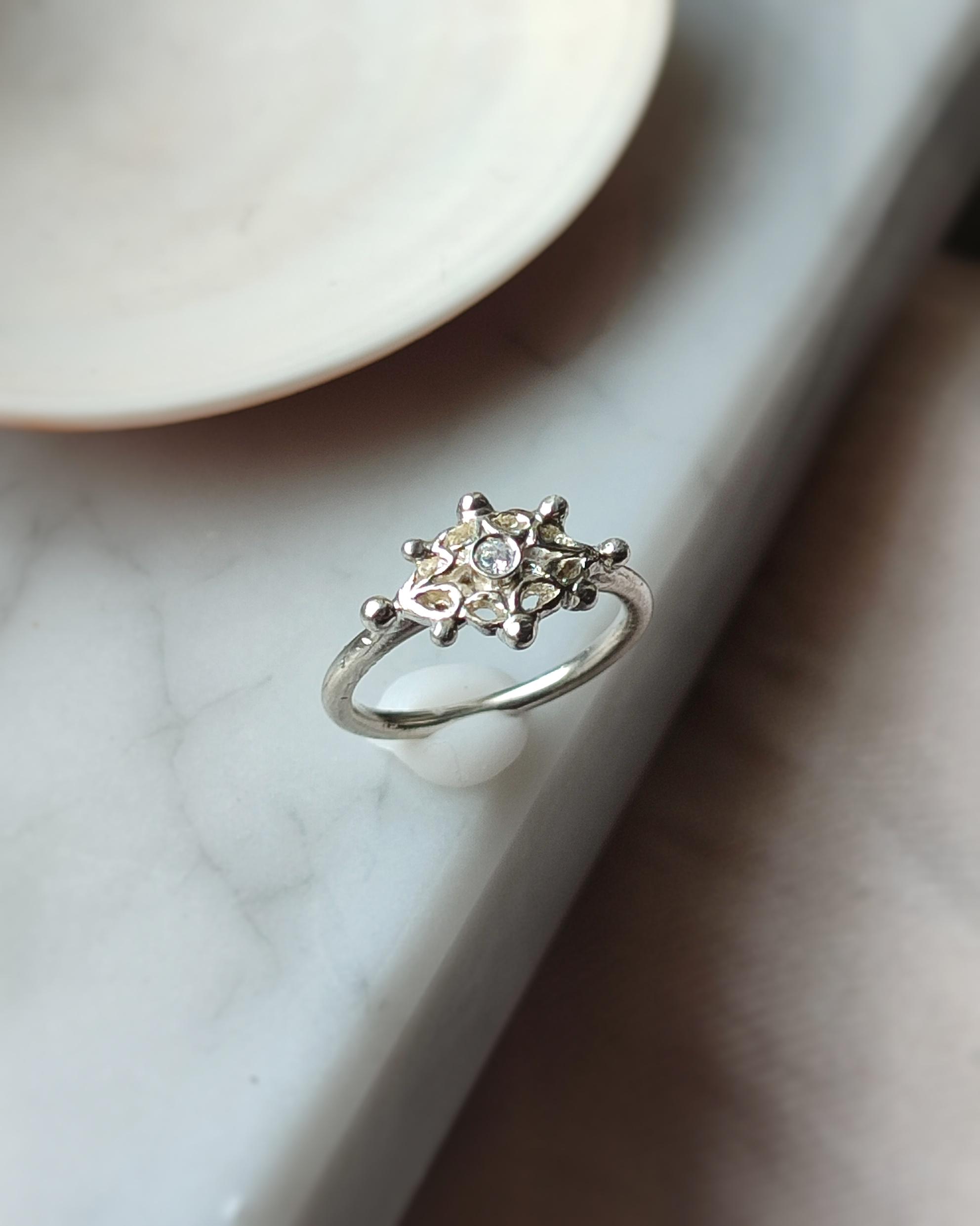 ***Questa collezione celebra la memoria e l'antica arte dei Merletti, sapientemente realizzati a mano dalle nostre nonne, una tradizione che non si dovrebbe perdere perchè parte integrante della nostra cultura e custode di una sapere manuale antico. Ho voluto ricordarla così, scolpendo a mano la cera per realizzare un anello impreziosito da un brillante zircone. L'anello è stato poi fuso con l'antica tecnica della cera persa in un laboratorio fiorentino.