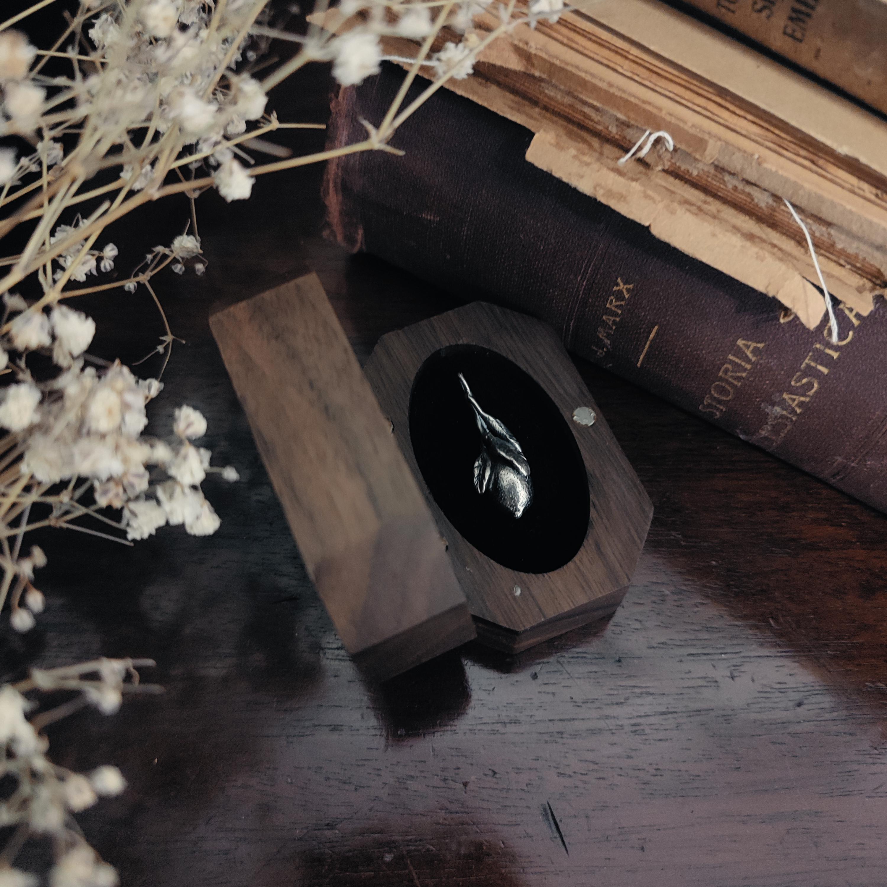 Ogni fiore viene custodito in una preziosa scatola di legno con interni in velluto nero e accompagnato da un biglietto dove vengono raccontate alcune curiosità ad esso legato.
