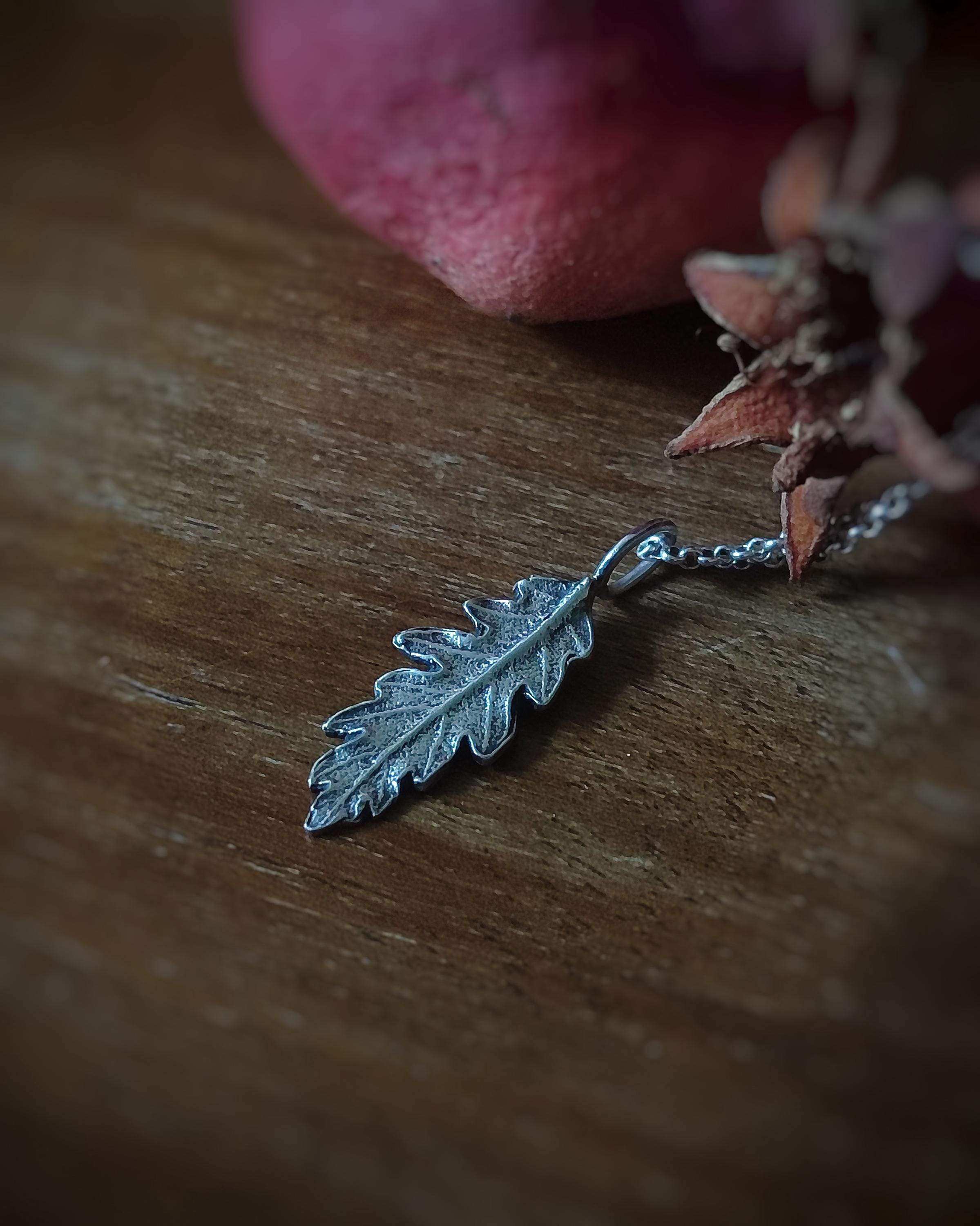 ***Questa collana è stata fatta a mano ed è pensata per le amanti della Natura che non rinunciano però ad avere un look sofisticato. La foglia di Quercia è stata scolpita interamente a mano. La catena è in argento 925.