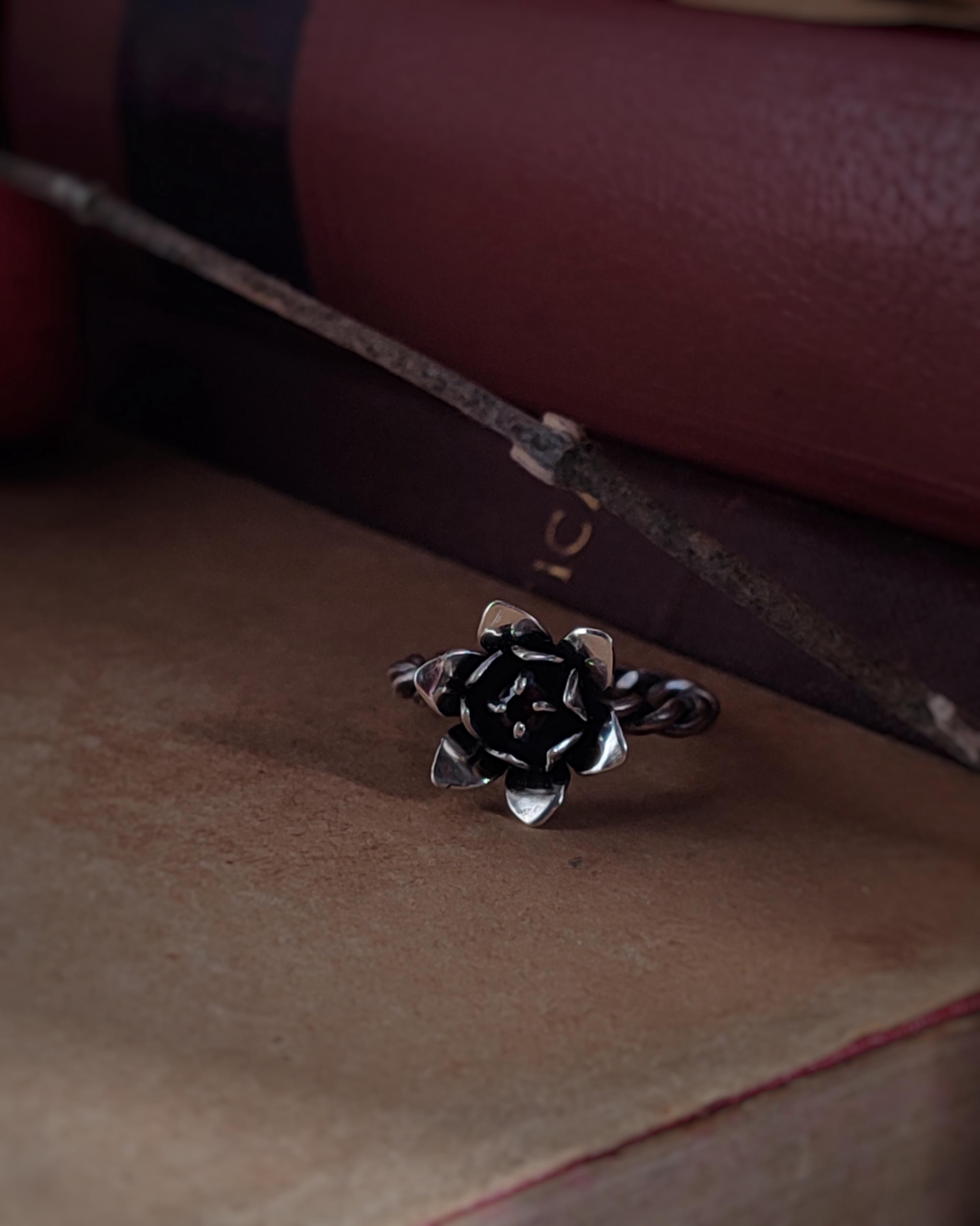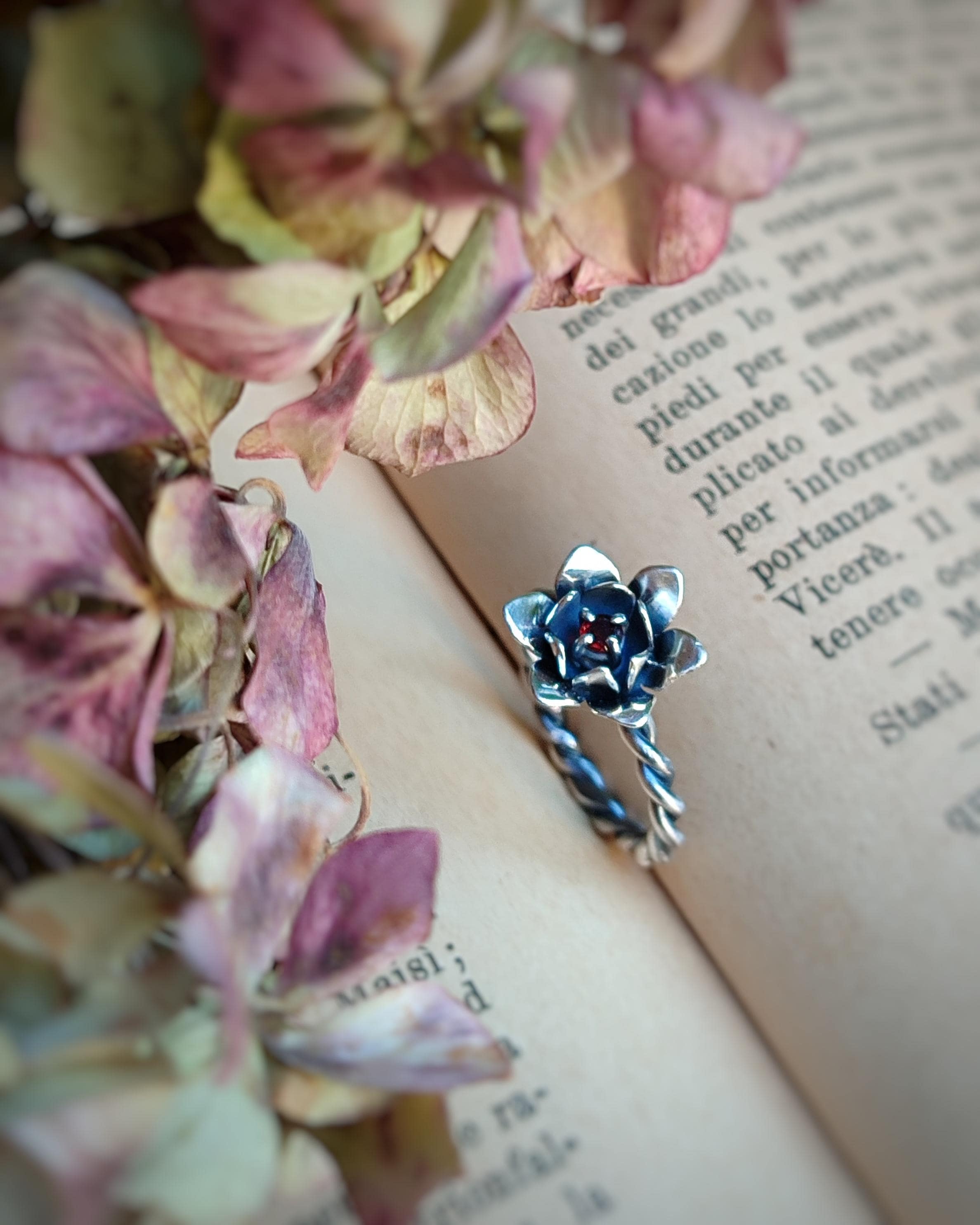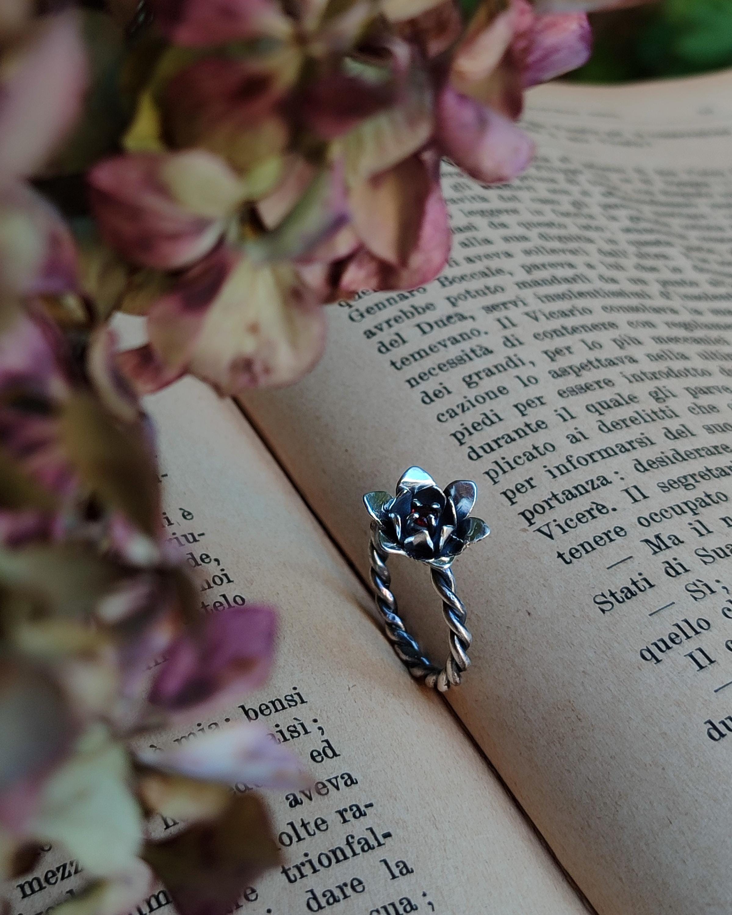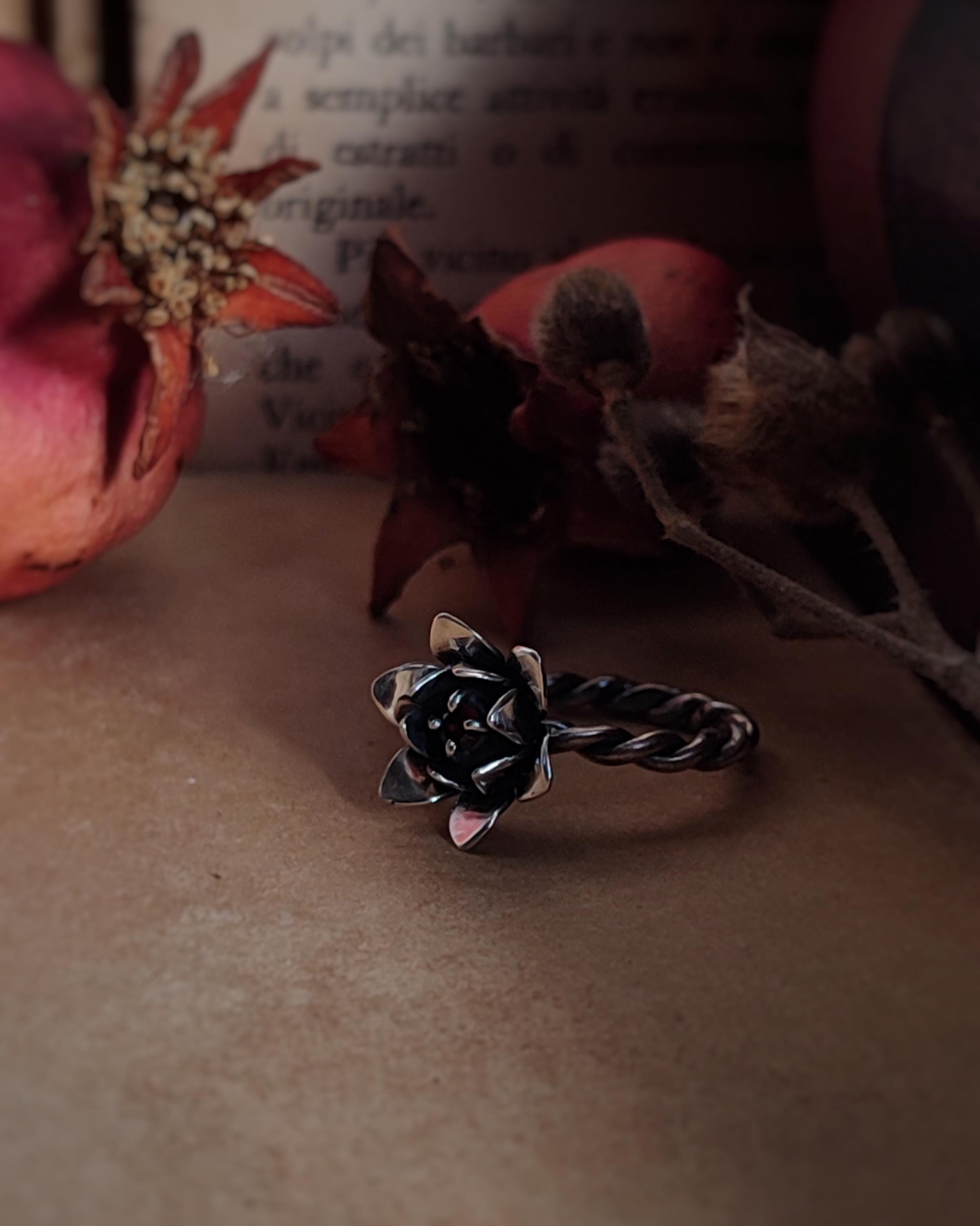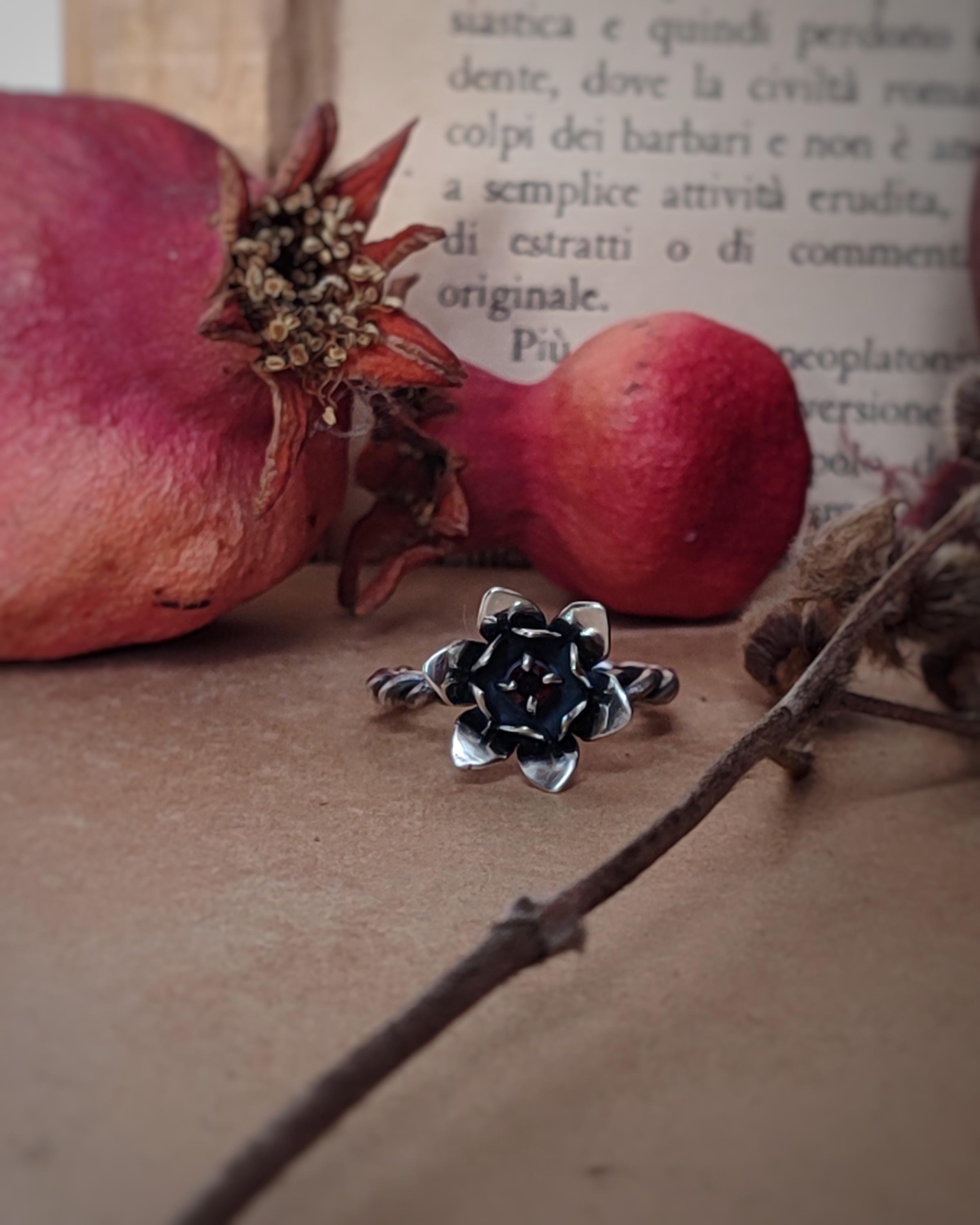 ***Anello in Argento 925 con fiore e granato