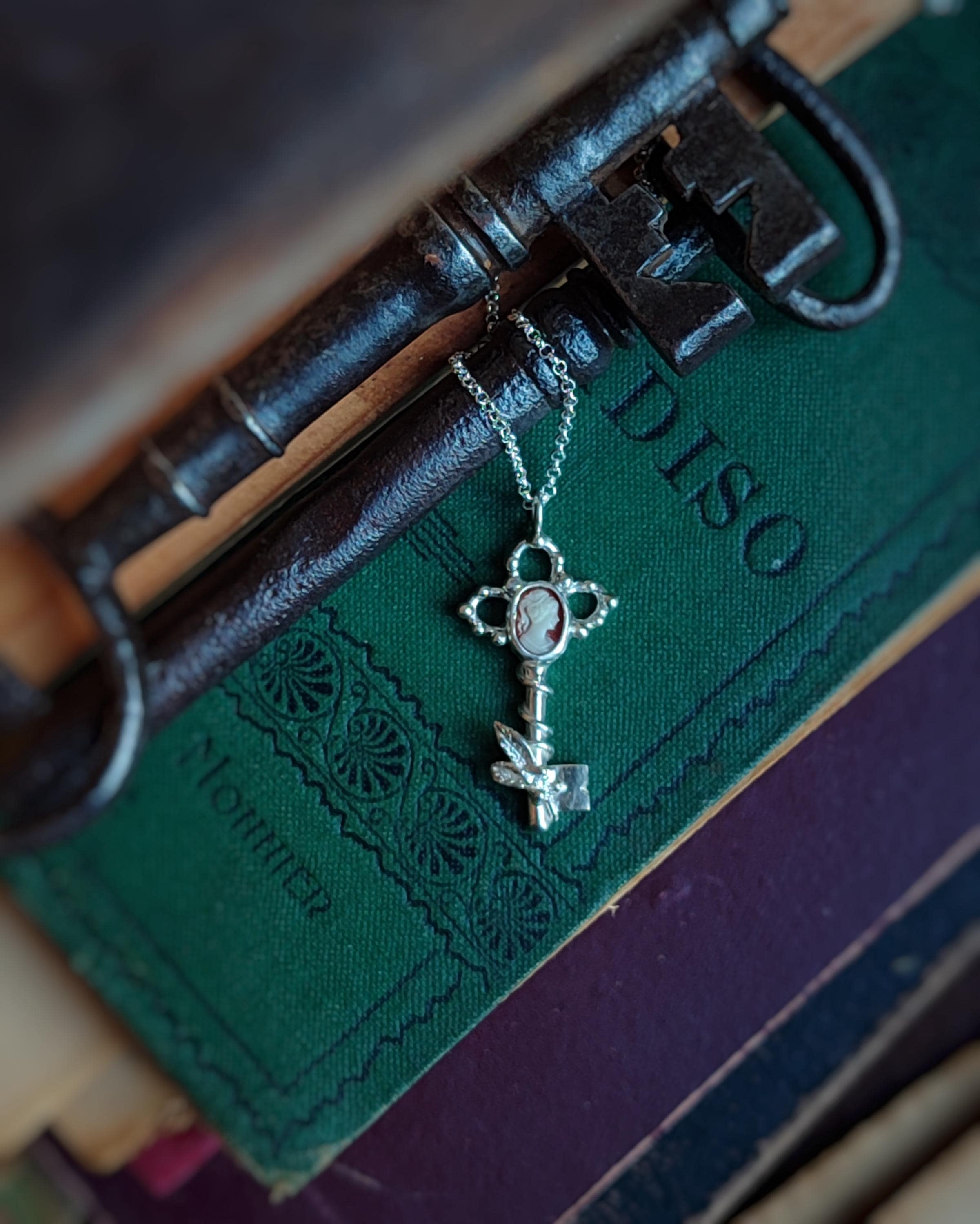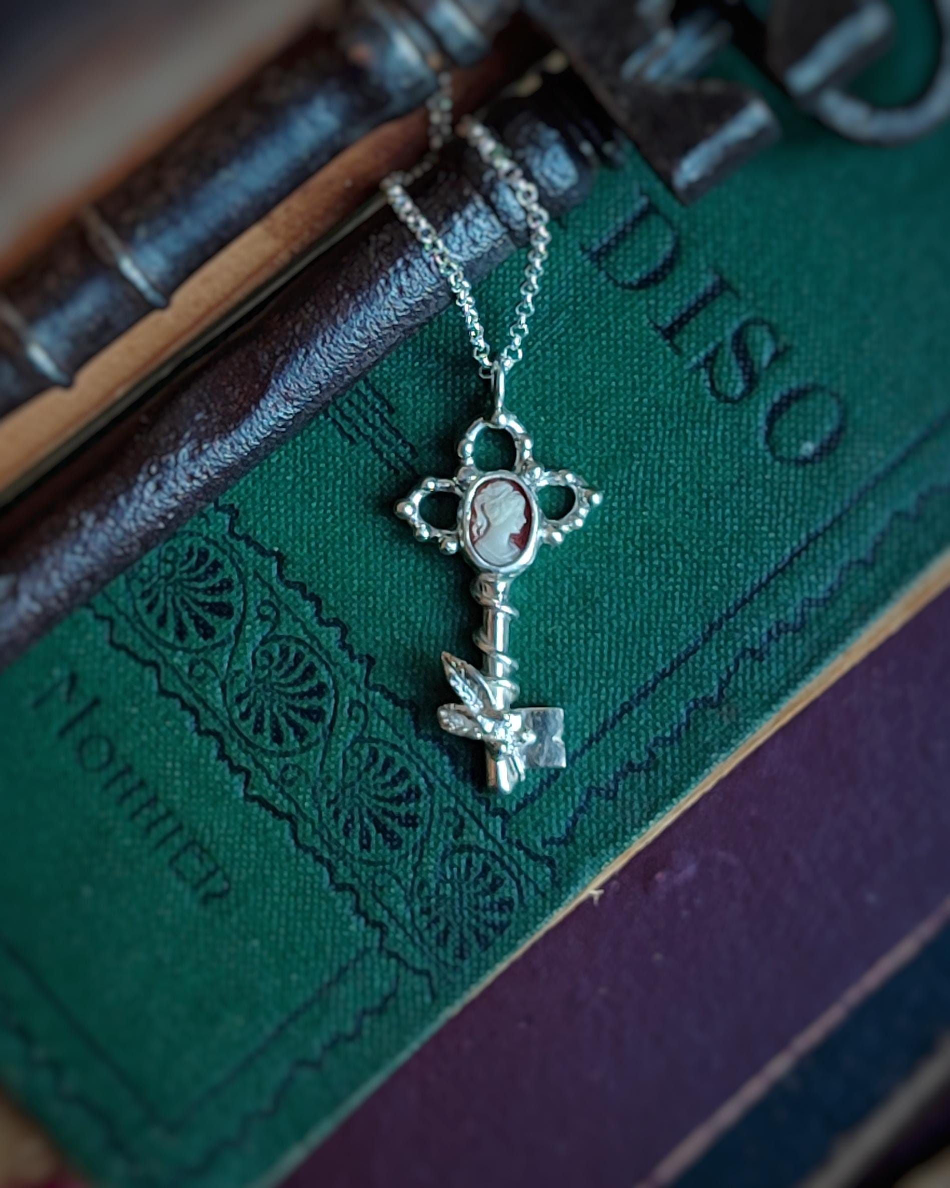 ***Collana in Argento 925 scolpita interamente a mano. Racchiude un cammeo vintage e un cubic zirconia. Il pendente scolpito in cera è stato fuso con l'antica tecnica della fusione a cera persa in un laboratorio fiorentino. Scolpito interamente a mano.